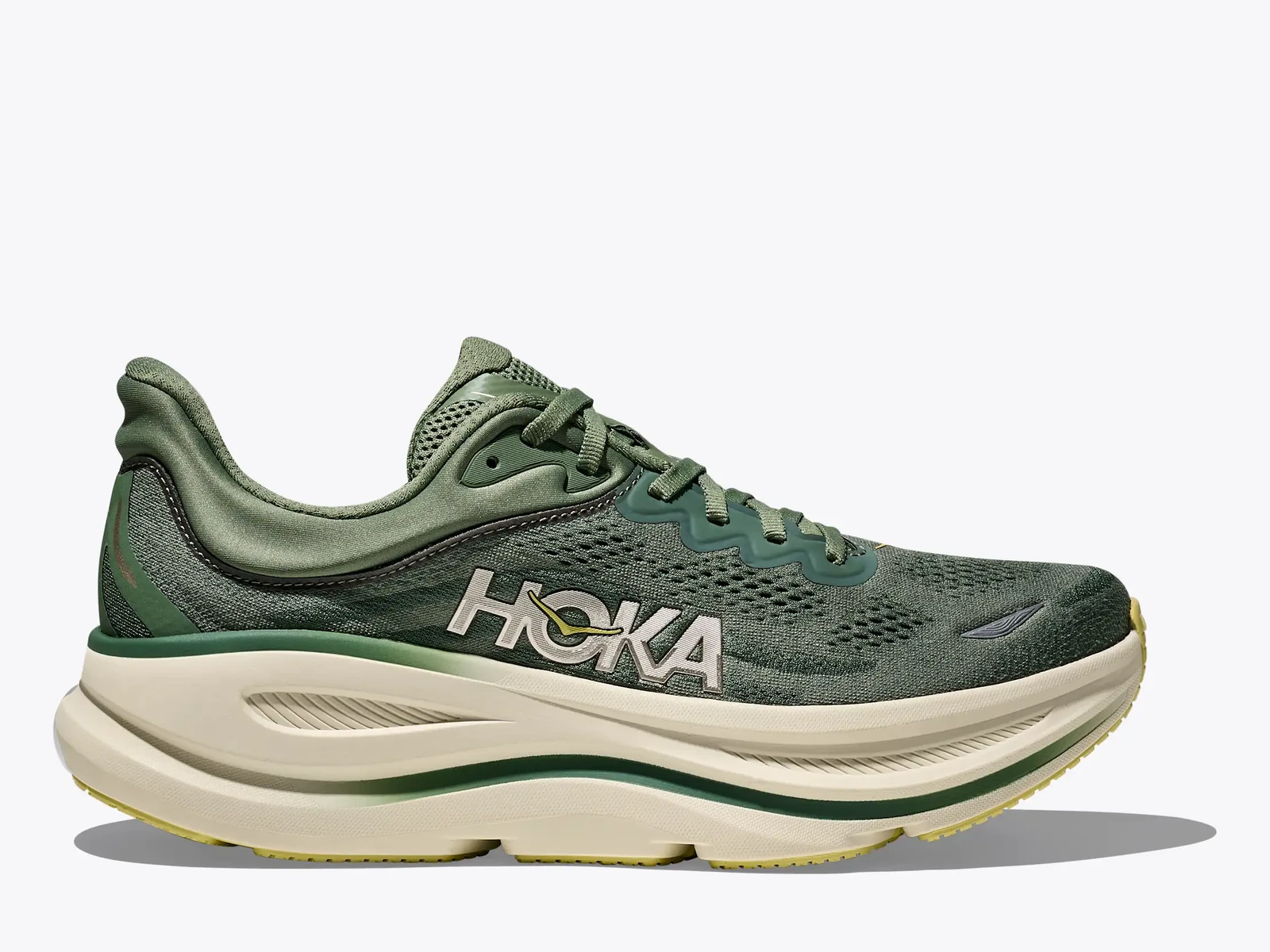 The ultra-cushioned game-changer. One of the hardest working shoes in the HOKA lineup, the Bondi 9 delivers peak plushness for everyday miles. Overhauled from top to bottom, we’ve increased the stack height and added a new premium foam midsole to deliver that soft, resilient ride that’s become synonymous with the Bondi. Elevated with a 3D molded collar and structured knit upper with zonal breathability, this ultra-cushioned cult favorite has been finished with Durabrasion rubber to combat high wear zones.