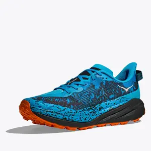 A grippy, responsive ride for technical terrain. There’s only one GOAT on the trail. And this is it. Combining HOKA’s tried and true cushioning with aggressive traction and ultralight materials, the Speedgoat 6 was born to tame the trail. A workhorse for technical terrain, this recent reissue was refined with a breathable woven textile upper, foot-hugging internal chassis, plusher dual gusset tongue, and revised lug orientation inspired by the hoof of a goat (what else?)