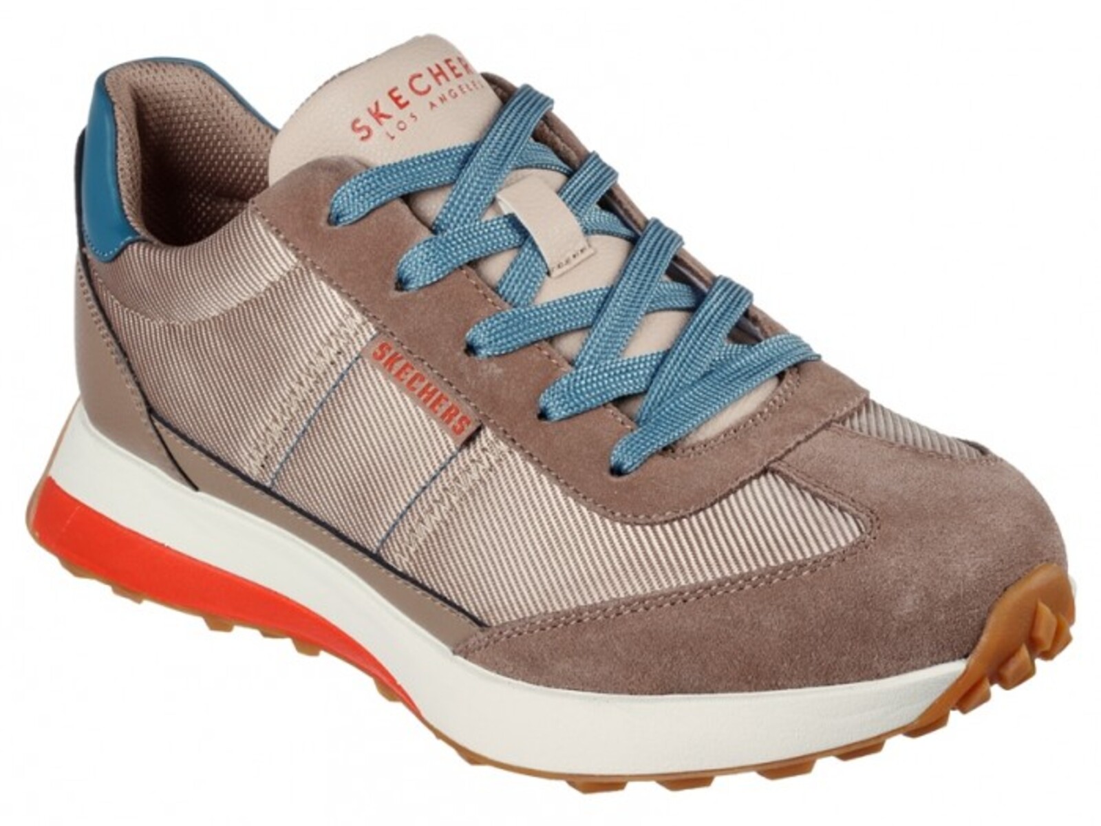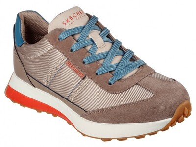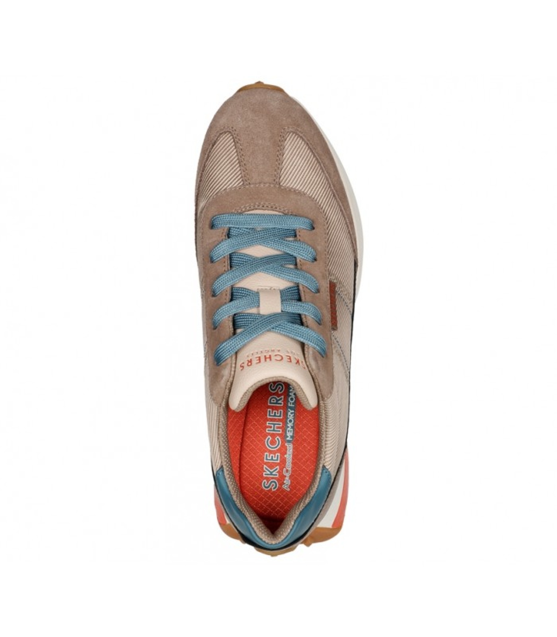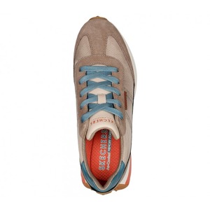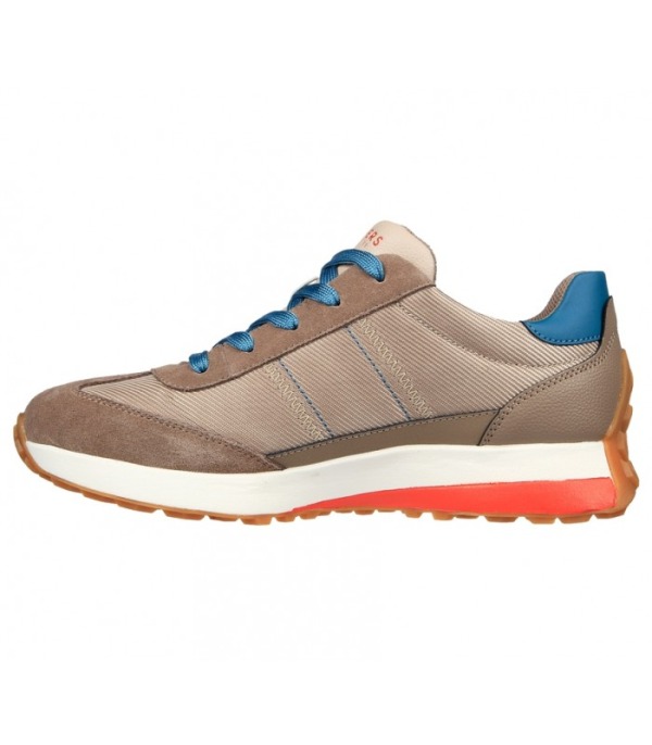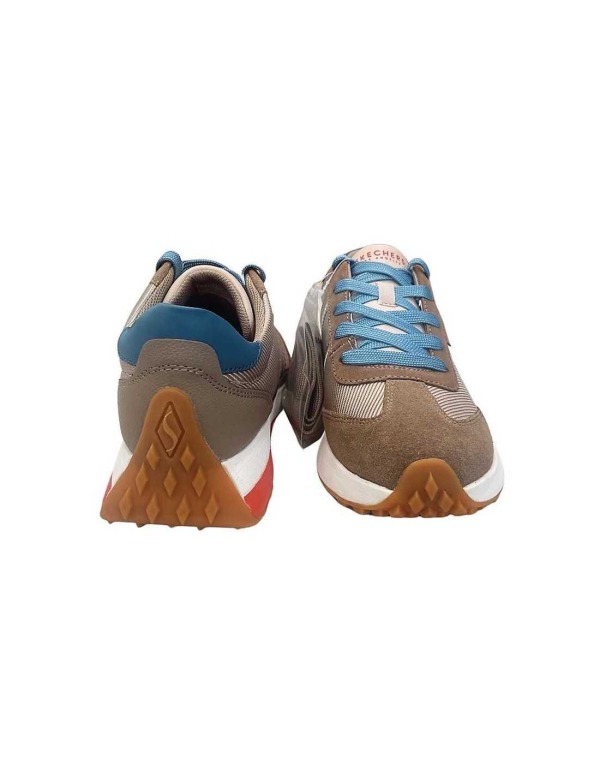 Sports shoes for women in taupe color with blue laces, fantastic runner-style model from the Skechers brand.